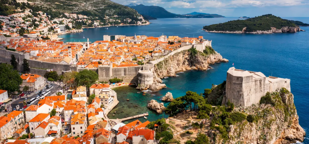 • Begin with a panoramic view of Dubrovnik, perched above the Adriatic.
